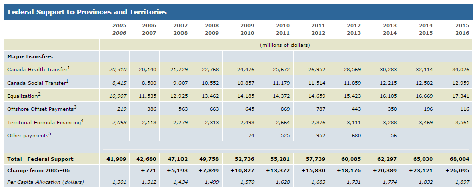 In 2015, over $17B will be divided up by everyone except Alberta, New Foundland and Labrador, Saskatchewan (just got rid of the NDP), and BC (got rid of the NDP a few years earlier).