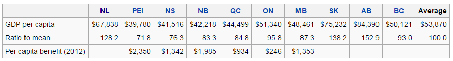 I don't get this one... you guys have oil too... New Foundland / Labrador isn't actually getting Payments because they are too rich now