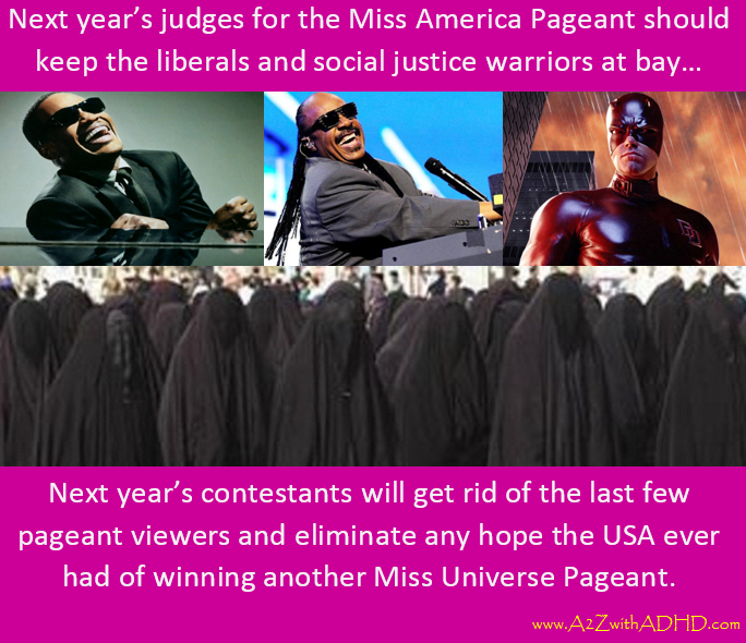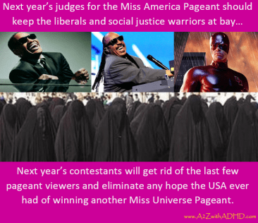 How will this affect the Miss America pageant? I have no idea. What I do know, is that as long as Social Justice Warriors are out to destroy the world we live in, all in the name of making everything more in their image, the less of a world we will recognize when it gets time to be straightened out.