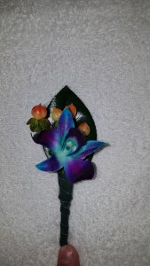 I got back to the hotel, quickly convinced my mother to let me take over her hotel room as floral-central and got to work trying to figure out how to work with the orchids. It took me 2.5 hours to build my first boutineer but it looked good. So good that I wasn’t sure that my “Nailed It” picture was going to work at all. I went to the pool with the kids for a couple hours and went to cook supper for my family and friends at the RV park and at 11pm I headed back to floral central (my mother’s hotel room) and got busy building.