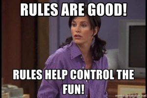 This list could go on forever. If I missed a new rule that really bothers you, feel free to let me know if the comments below on the blog post. If you comment on this post on Facebook or Twitter, I assure you that I will miss most of your comments. That would make me sad.