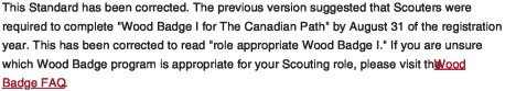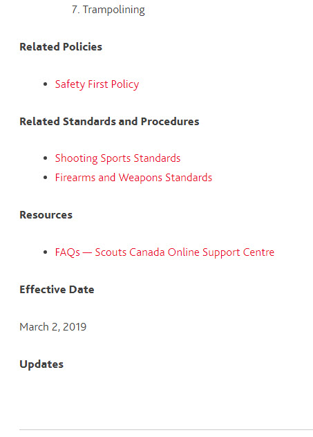 Even with this minuscule change, the revision table needs to be updated even though Scouts Canada refuses to post updates in the area that they have placed sub-headings that look like this is what they are for. They did post a revision date in one of the standards for Knives and axes. Cudos to them for following their own standard once… baby steps right?