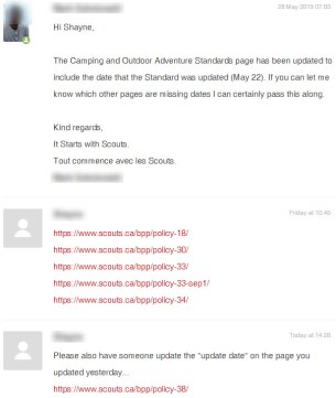 The one thing I did like, was that they numbered each policy or standard in the link that you used to click on so that you could see that somewhere in the background there was someone that wanted to be able to track something… there was hope at least. The adventure standard used to go to https://www.scouts.ca/bpp/policy-29/ but now it goes to https://www.scouts.ca/resources/bpp/policies/adventure-standards.html for some reason.