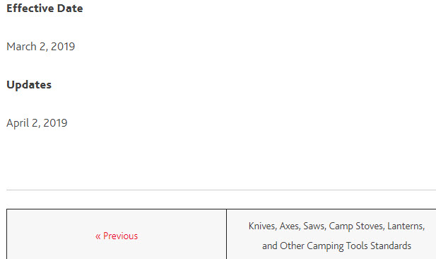 - Revision 2.4 on 2019-09-25 included… (24-b) Property Standards, (31) International Travel Standards, (36) Shooting Sports Standards, (37) Knives, Axes, Saws, Camp Stoves, Lanterns, and Other Camping Tools Standards, (38) Safety Equipment Standards