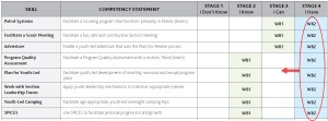 Now the WB1 program has a Scouter Development Map which shows 14 skills (from the WB2 Program Facilitation skill) that need to reach either a Stage 2 or 3 on the same grading scale that the WB2 system has been utilizing for the past couple years.  Very intelligent.  Love this!