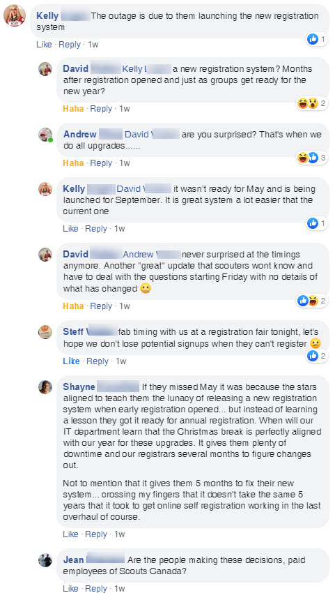 We were all stunned a couple weeks ago when SC (Scouts Canada) decided to shut down their website for 48-hours to totally rebuild the registration system. Outside of Ottawa, every other IT person that I knew in Canada would have suggested this upgrade be done over Christmas. It is a slow time for volunteers, employees, and programs (though some like me would still be interrupted).  They would have five months to test things before early-bird registration started in May. Planning this 10 days before September 1 with your IT department’s track record makes it clear that someone in power is still making decisions without any thought to the Plan – Do – Review process that we tout so often.