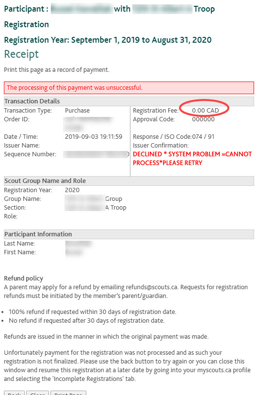 In my own personal life, my Rover had to volunteer as a Rover Crew Scouter instead of a youth for some bizarre reason.  There was simply no way for him to hit renew this year. My cub can’t register because his fee comes up as $0 (as much as I wanted that one to work). I personally couldn’t use the same renewal process I have for many years (most recently only a few months ago) because it said that I was over 27. That age didn’t help my Rover though.  For some reason if you are under 27 you can’t renew as a youth and if you are over 27 you can’t renew as a volunteer.