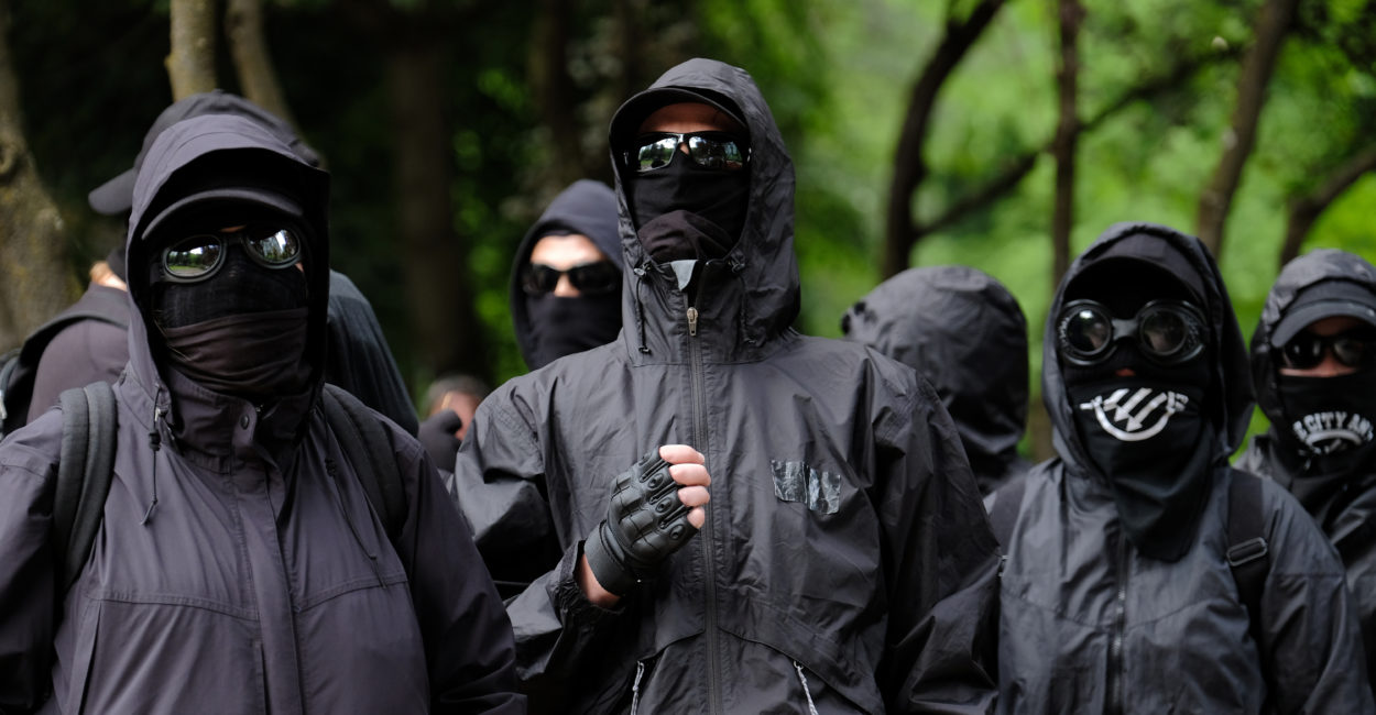 Antifascist counter-protesters gather in Terry Shrunk Plaza in Portland, Ore., on June 3, 2018, during a far-right Patriot Prayer freedom march led by Joey Gibson in honor of Tusitala “Tiny” Toese who is returning to Samoa. (Photo by Alex Milan Tracy/Sipa USA) (Newscom TagID: sipaphotoseight200629.jpg) [Photo via Newscom]