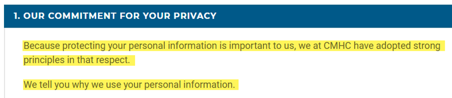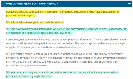 But before we go chastising the CMHC with the mob, let us look at what promises they have broken from their privacy policy.
