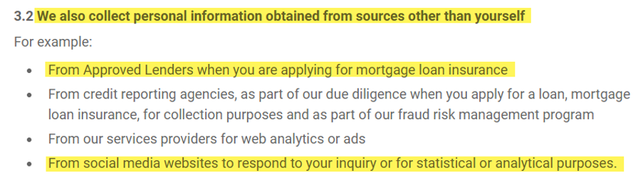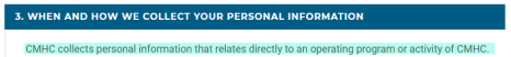 You are collecting data from the Office of the Superintendent of Financial Institutions on people who are not CMHC customers and you dare use the word “directly” under the heading, “when and how we collect your personal information”? That is a bold move even for a corrupt government with virtually no oversight.