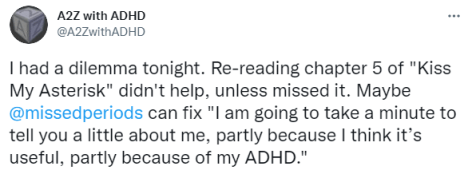 I am going to take a minute to tell you a little about me, partly because I think it’s useful, partly because of my ADHD.